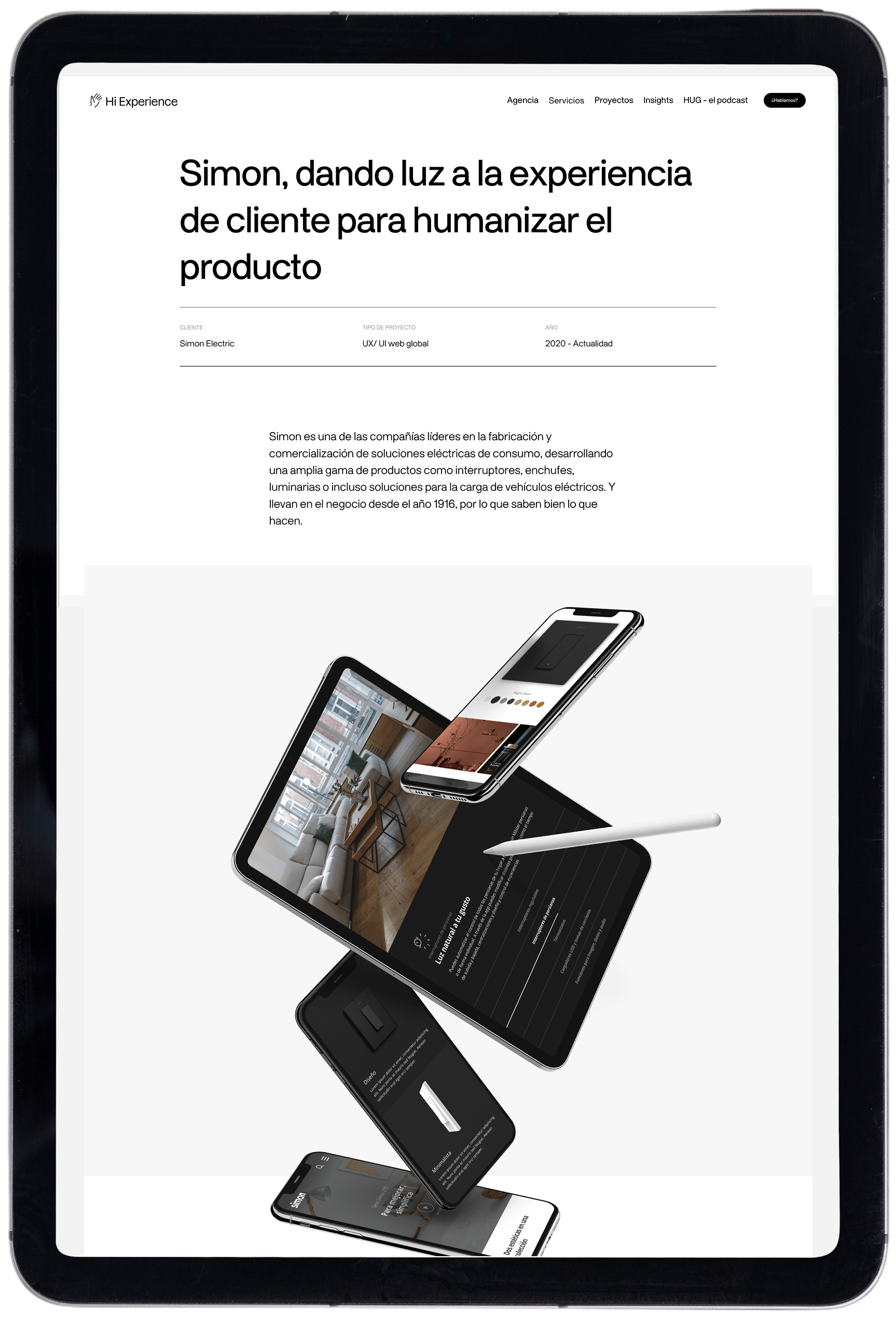 Mi colaboración con Hi Experience, agencia de referencia en el desarrollo de productos digitales y UX, se inició en 2018 como copywriter para proyectos de sus clientes, una cartera en la que actualmente destacan compañías y organismos como Inditex, ISDIN, FC Barcelona o Simon Electric.